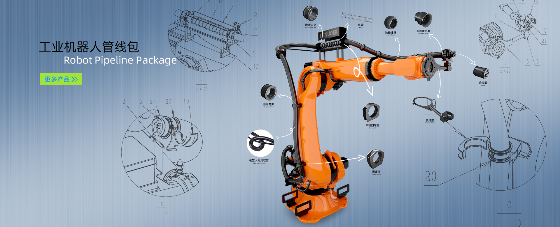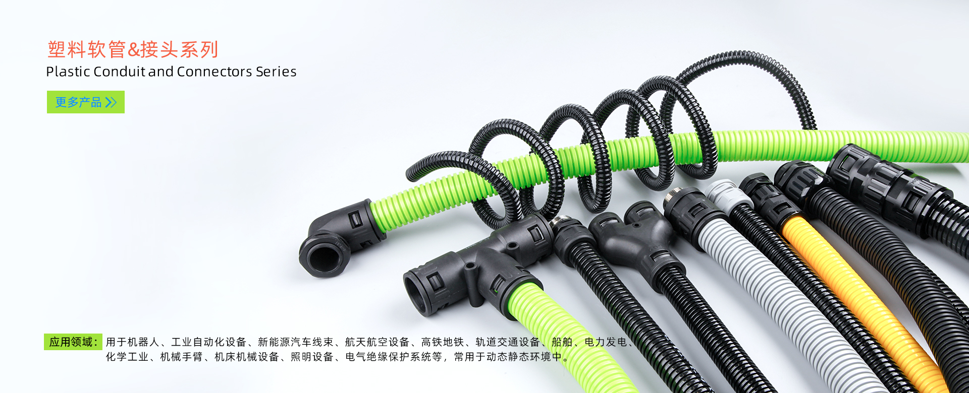 尼龍軟管系列LNE-PA12-Z、LNE-PA12、LNE-PUR及配套的軟管接頭系列LNE-SM-G等產(chǎn)品均獲得環(huán)保RoHS認(rèn)證、歐盟CE認(rèn)證,可以滿(mǎn)足自動(dòng)化機(jī)械手臂抗扭曲要求的布線(xiàn)環(huán)境。 軟管還可定制阻燃V0級(jí)、耐高低溫、抗UV可根據(jù)客戶(hù)指定波紋粗細(xì)要求。LNE-PA 12 標(biāo)準(zhǔn)尼龍12軟管LNE-PURPUR軟管工業(yè)機(jī)器人管線(xiàn)包LNE-SM-G 軟管接頭