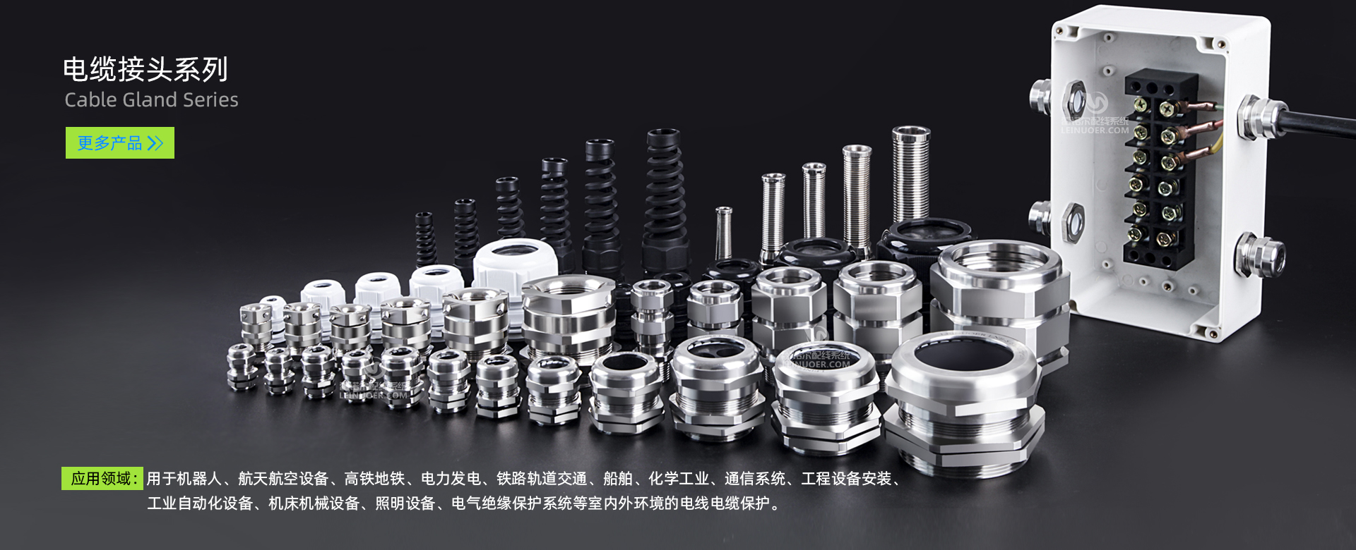 電纜接頭系列LNE-RCK、LNE-SBG及金屬軟管系列LNE-JSPH-P4、LNE-JSGH等產(chǎn)品廣泛適用于船舶、化工、礦業(yè)易防爆等室內(nèi)外箱體、柜體和電機(jī)部位的線(xiàn)束保護(hù)需求。 產(chǎn)品通過(guò)UL94-2020阻燃測(cè)試以及環(huán)保RoHS認(rèn)證、歐盟CE認(rèn)證。 電纜接頭系列LNE-K、LNE-KD、LNE-KFW、LNE-RCK、LNE-SBG等產(chǎn)品可以滿(mǎn)足電機(jī)、控制器以及高